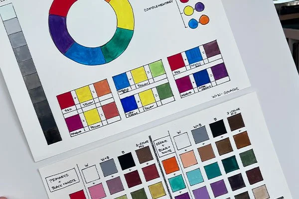 WORKSHOP 1–4PM | STUDIO OPENS 12:30PMBy popular request, please join me for an intro into the world of color mixing. This workshop will include basic color theory plus hands-on experience mixing colors. You will have the choice of watercolor, gouache or acrylic paints and will leave with your own color chart and sample mixing color palette sheet.